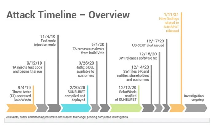 Investigators later discovered that attackers likely gained access to SolarWinds’ internal systems sometime in 2019.